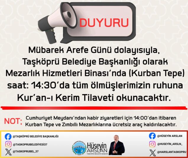 - 19-03-202616:33 Taşköprü'de Arefe Gününde Kur'an Ve Dua Programı Düzenlendi
