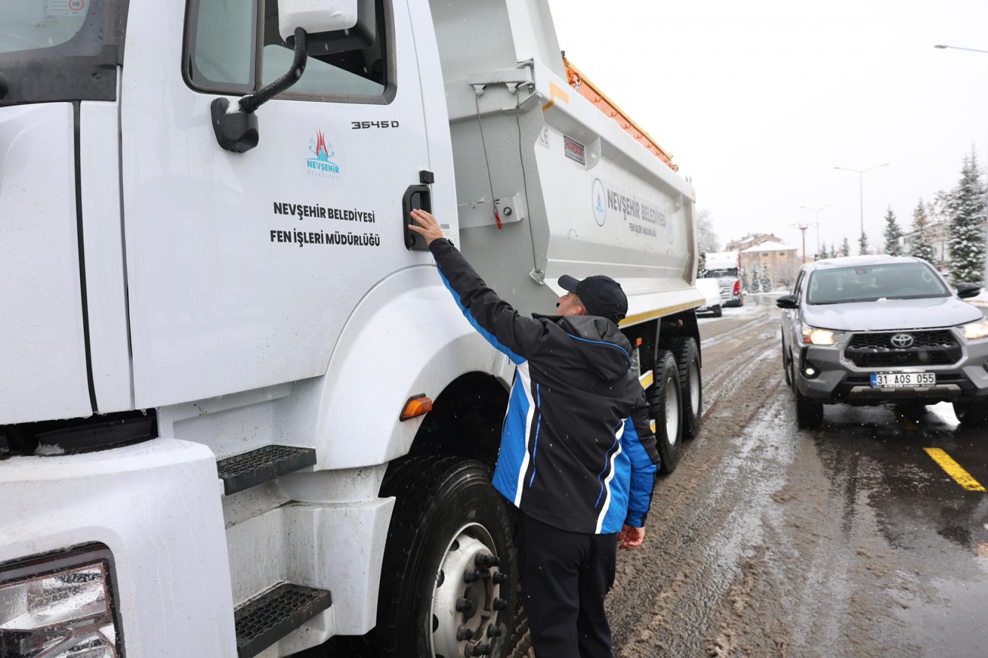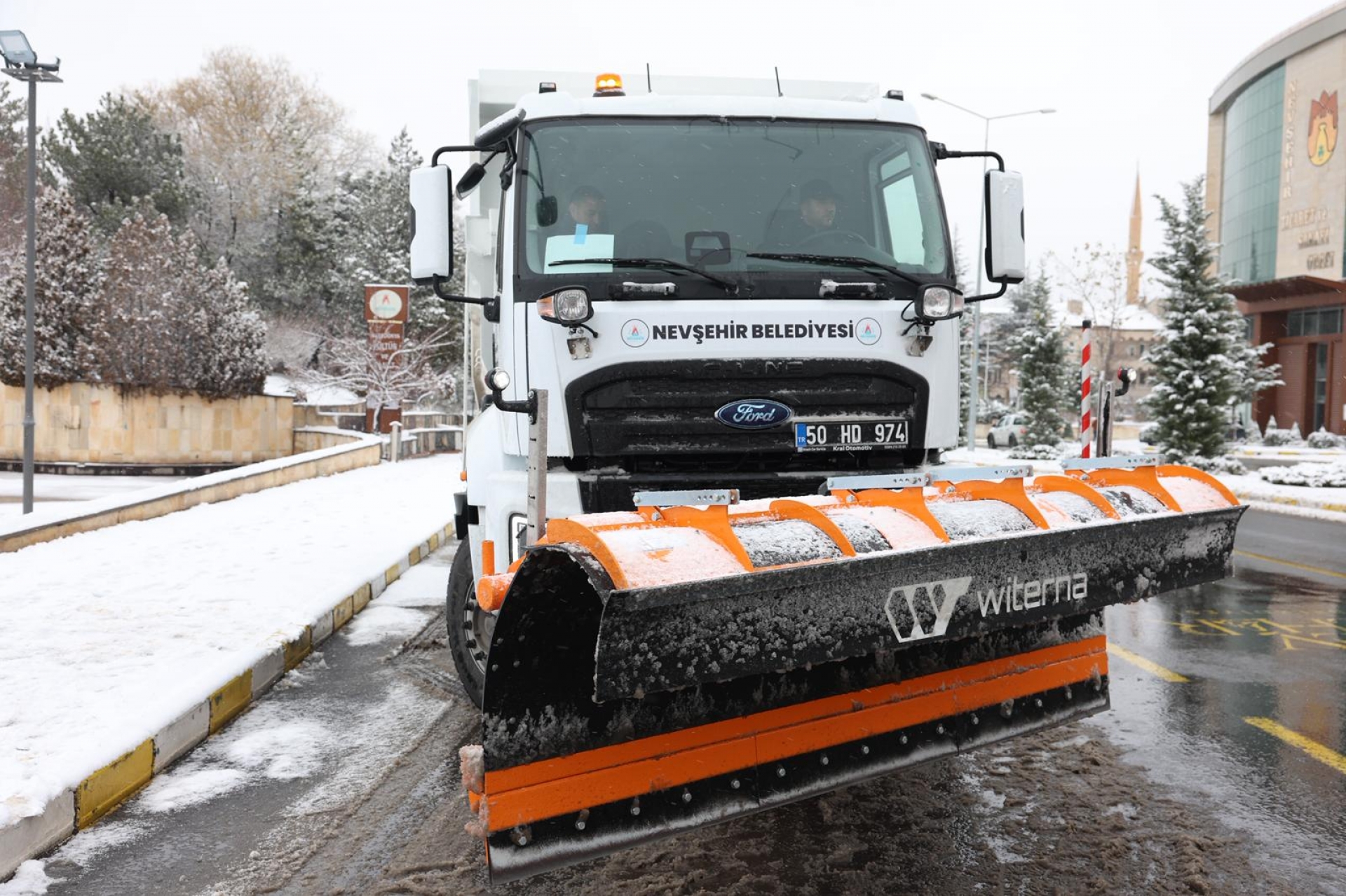 Nevşehir'de dün akşam saatlerinde başlayan karla karışık yağmur gece saatlerinden itibaren yerini yoğun kar yağışına bıraktı. Nevşehir Belediyesi ekiplerinin şehir merkezinde başlattığı karla mücadele çalışmaları aralıksız devam ederken, Nevşehir Belediyesi'nin yeni katılan Kar Küreme Aracı'nın şoför koltuğuna geçerek şehrin periyodik noktalarında kar temizliği yapıldı.
