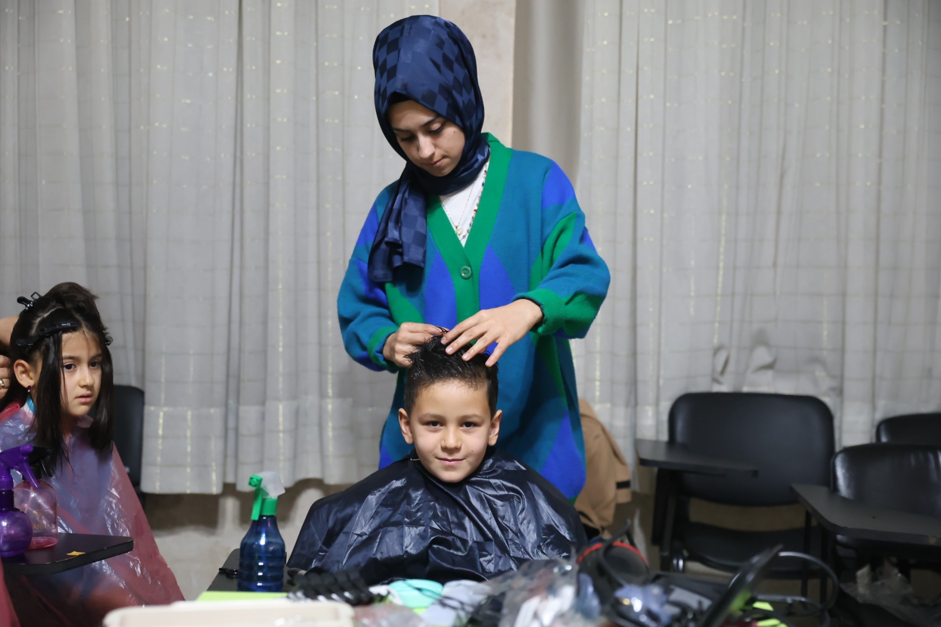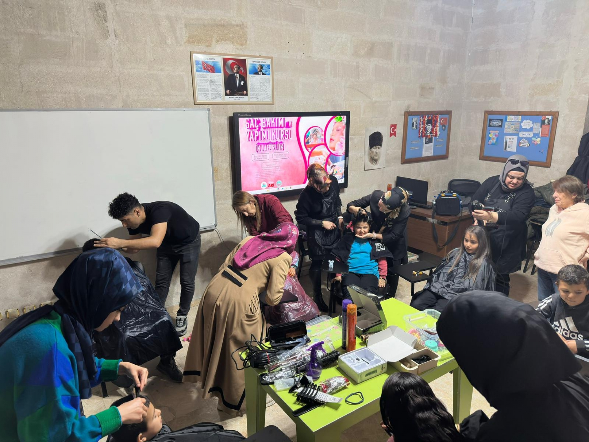 KAPEM Kuaförlük Kursu’nda eğitim gören kursiyerler, yaklaşık 30 köy okulu öğrencisini tarihi Paşa Konağı’nda misafir ederek ücretsiz saç kesimi hizmeti sundu ve Gönül Sofrasında sıcak çorba ikramıyla çocuklara keyifli bir gün yaşattı.