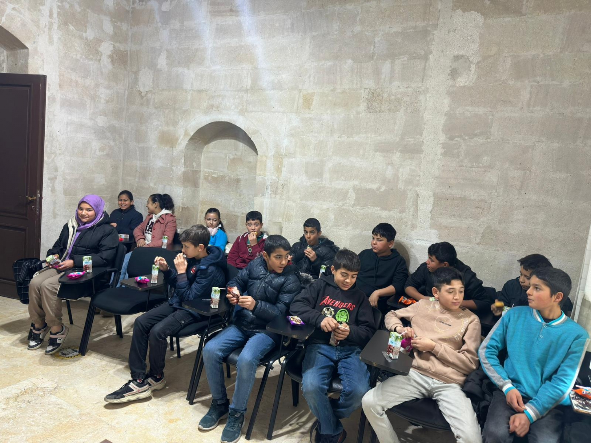 Saç kesimi işlemlerinin ardından öğrenciler, Paşa Konağı’nın tarihi atmosferinde ağırlanarak Gönül Sofrası’nda sıcak çorba ikramıyla misafir edildi.