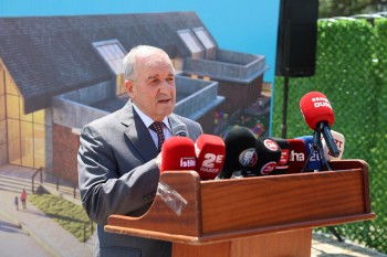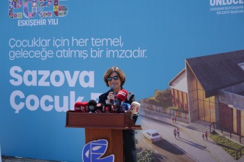 Konuşmaların ardından butona basılarak Sazova Çocuk Evi'nin temeli atıldı.